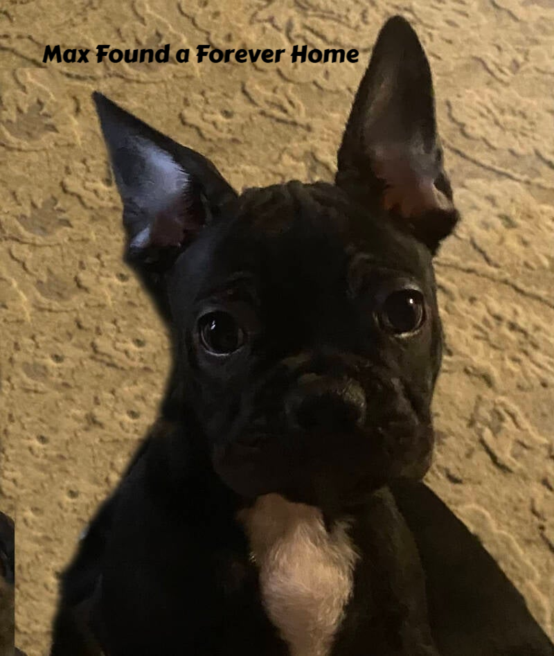 Max found his Forever Home. A Brindle Male Frenchton puppy that Found a Forever Home. He came with age-appropriate dewormings, vaccines, vet exam, 1 year health guarantee, and health certificate.